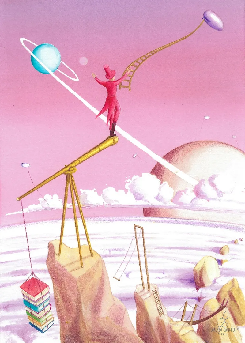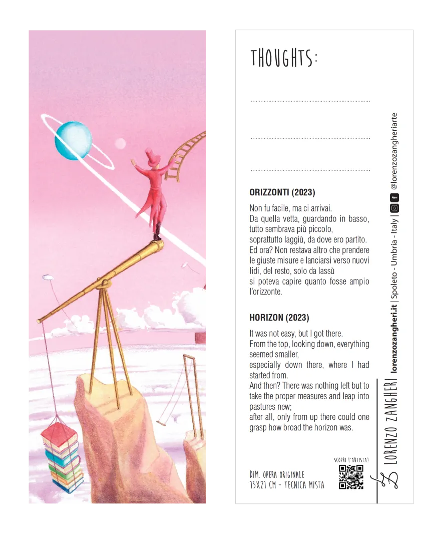 Bookmark printed on a pearly paper sheet, taken from Lorenzo Zangheri’s original drawing Horizon. It may be bundle-purchased with the relative Author’s greeting card.